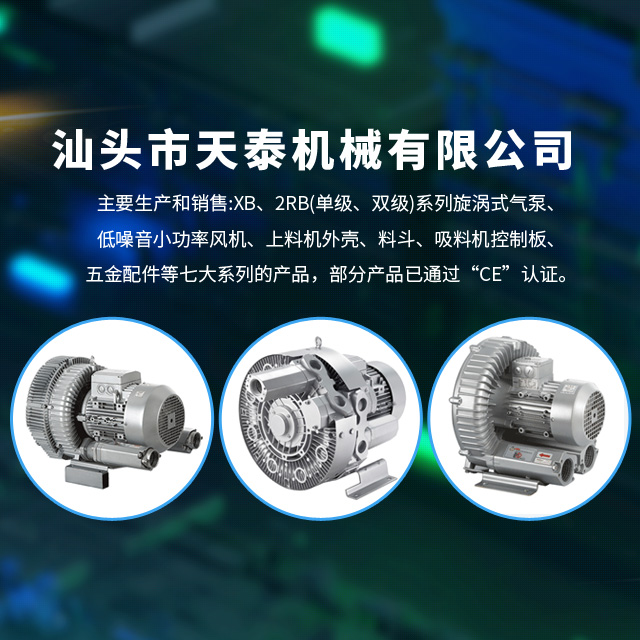 是一家集設計、生產、研究、技術服務于一體的風機制造商。主要生產和銷售:XB、2RB(單級、雙級)系列旋渦式氣泵、低噪音小功率風機、上料機外殼、料斗、吸料機控制板、五金配件等七大系列的產品,部分產品已通過“CE”認證。